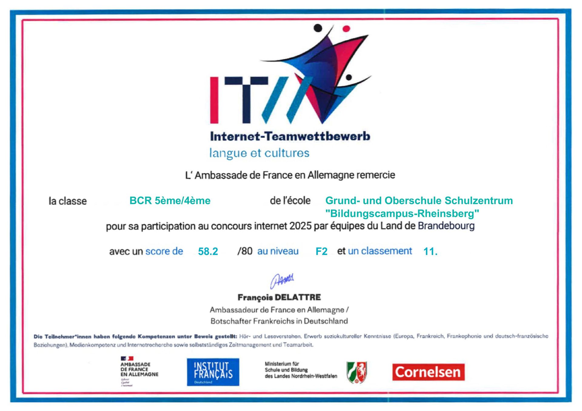 Die Teilnahme war nicht nur eine tolle Herausforderung, sondern auch eine spielerische Möglichkeit, sich mit der französischen Sprache auseinanderzusetzen. Neben dem Spaßfaktor gibt es für unser Team eine Urkunde als Anerkennung.