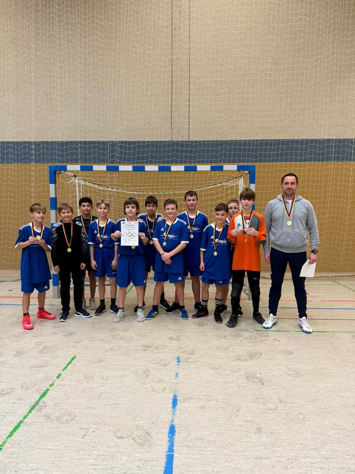 Großer Erfolg für den Bildungscampus Rheinsberg: Unsere Handballmannschaft der Wettkampfklasse U14 (männlich) hat beim Kreisentscheid des Wettbewerbs „Jugend trainiert für Olympia“ in Wittstock (D.) den 1. Platz erreicht und bereitet sich jetzt auf das Regionalfinale im Januar 2026 vor. Der beste Spieler des Turniers war darüberhinaus Jamie-Lee Ünver - auch vom Bildungscampus-Rheinsberg (Foto 2). Mit viel Einsatz, Teamgeist und Spielfreude überzeugten unsere Schüler auf ganzer Linie. Wir sind stolz auf diese tolle Leistung. Ein besonderer Dank geht an unseren Sportlehrer Herrn Drewicz , der das Team engagiert vorbereitet und begleitet hat. Herzlichen Glückwunsch an die Mannschaft!